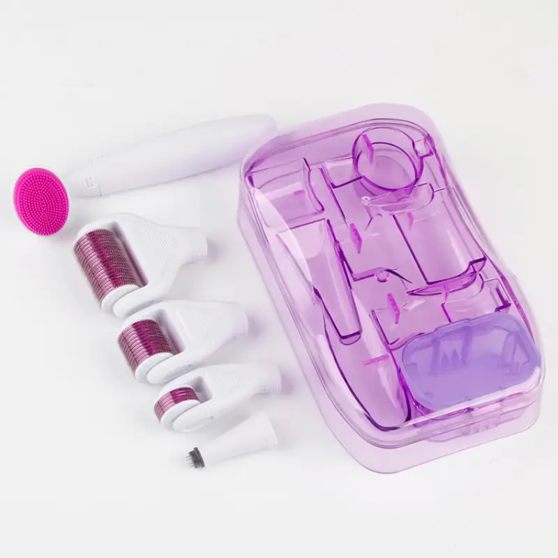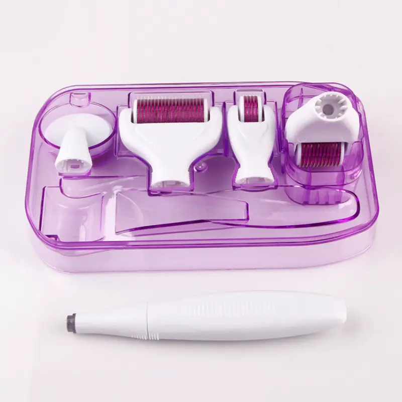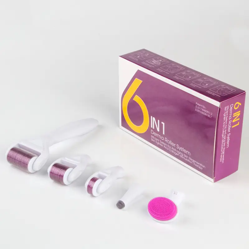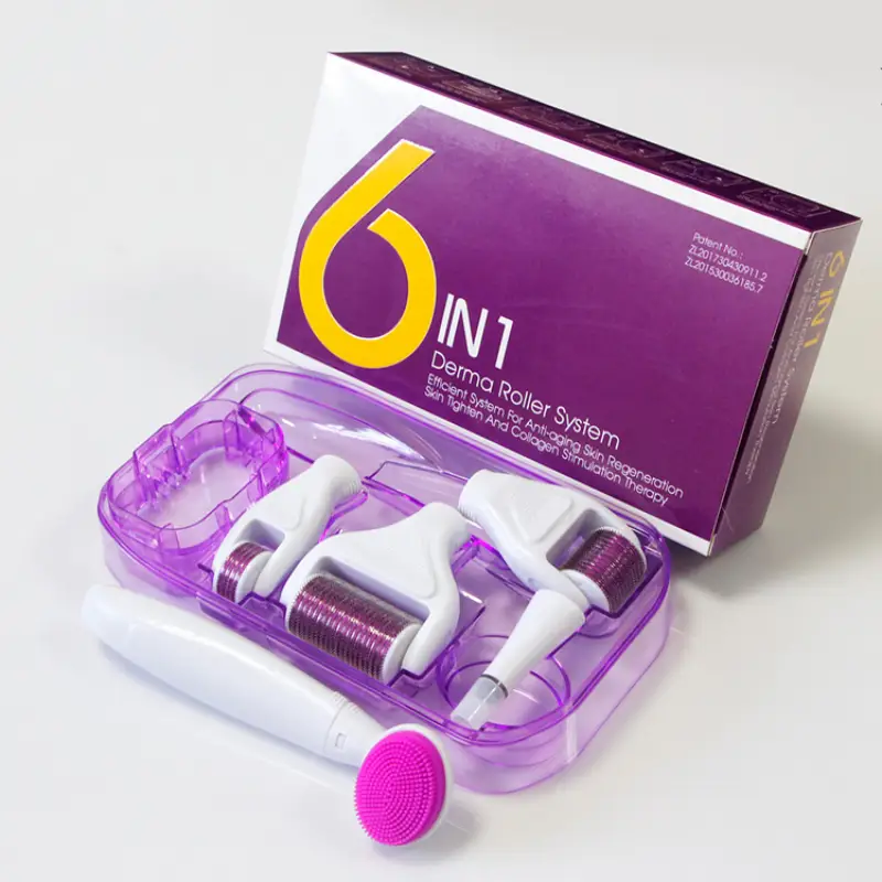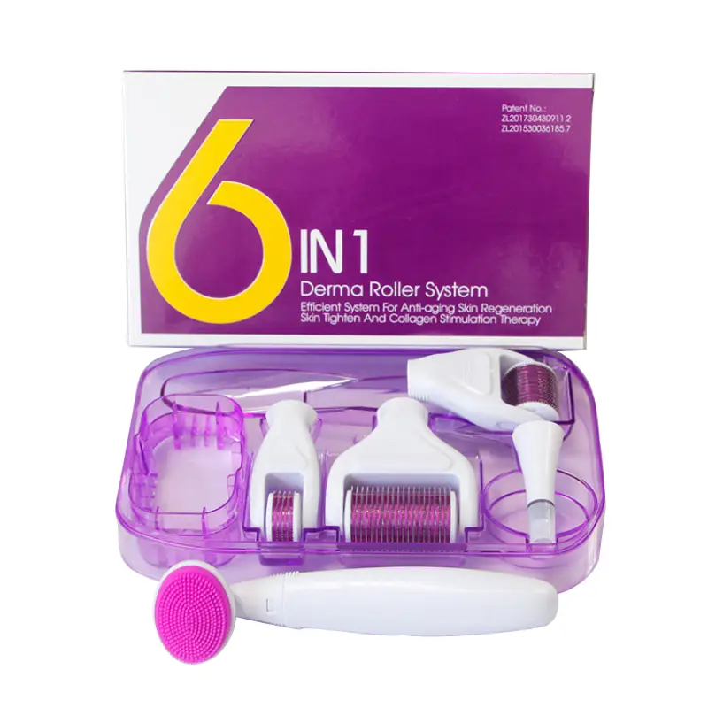 مجموعة الديرما رولر لتجديد البشرة 6 في 1 التجميلية منزلية متكاملة تستخدم تقنية الإبر الدقيقة (Microneedling) لتحفيز إنتاج الكولاجين الطبيعي والإيلاستين في الجلد .