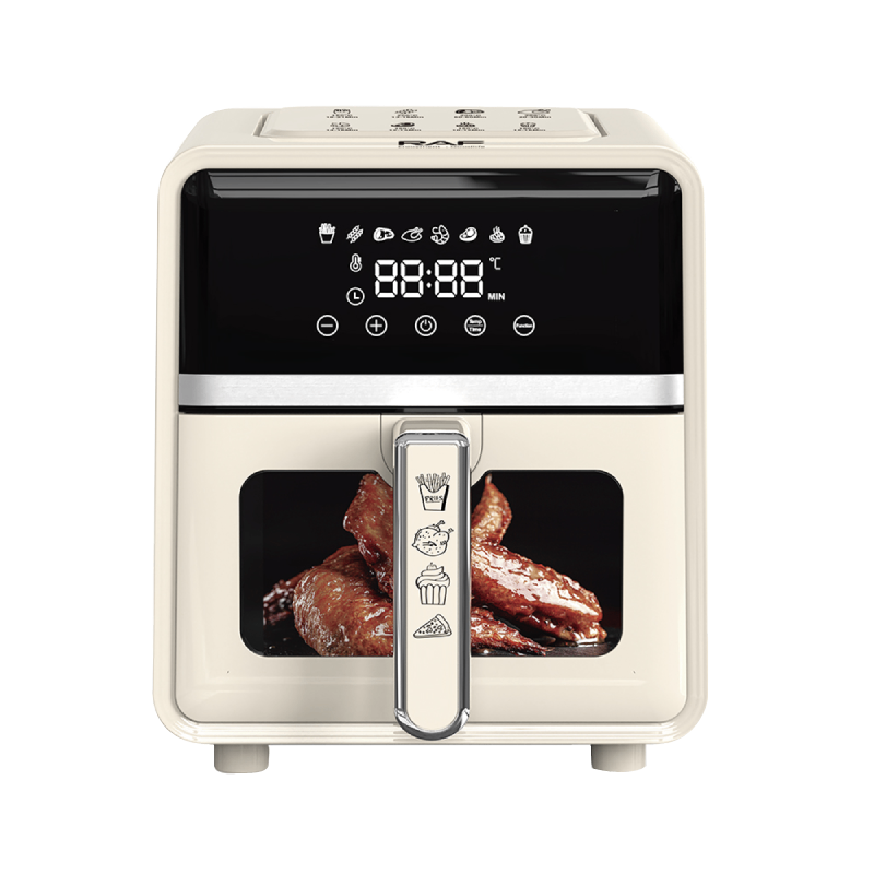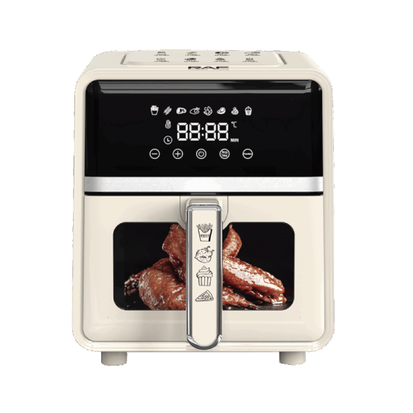أما المقلاة الهوائية سعة 5 لترات، فتُناسب كميات كبيرة وتحافظ على عصارة الطعام بفضل دوران الهواء الساخن , يسمح لك التصميم المميز المزود بنافذة