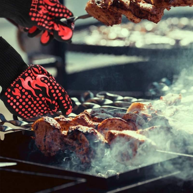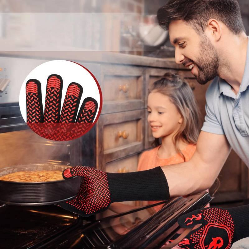 كفوف شواء مقاومة للحرارة مصنوعة من السيليكون غير قابلة للانزلاق مناسبة للأستخدامات : الطبخ – الشواء – الخبز – اللحام .