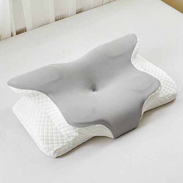 وسادة عنقية على شكل فراشة لتخفيف آلام الرقبة والكتف قابلة للتعديل من إسفنج الذاكرة مريحة للعظام و تدعم محيط الرقبة لمن ينامون على الجانب والظهر والبطن .