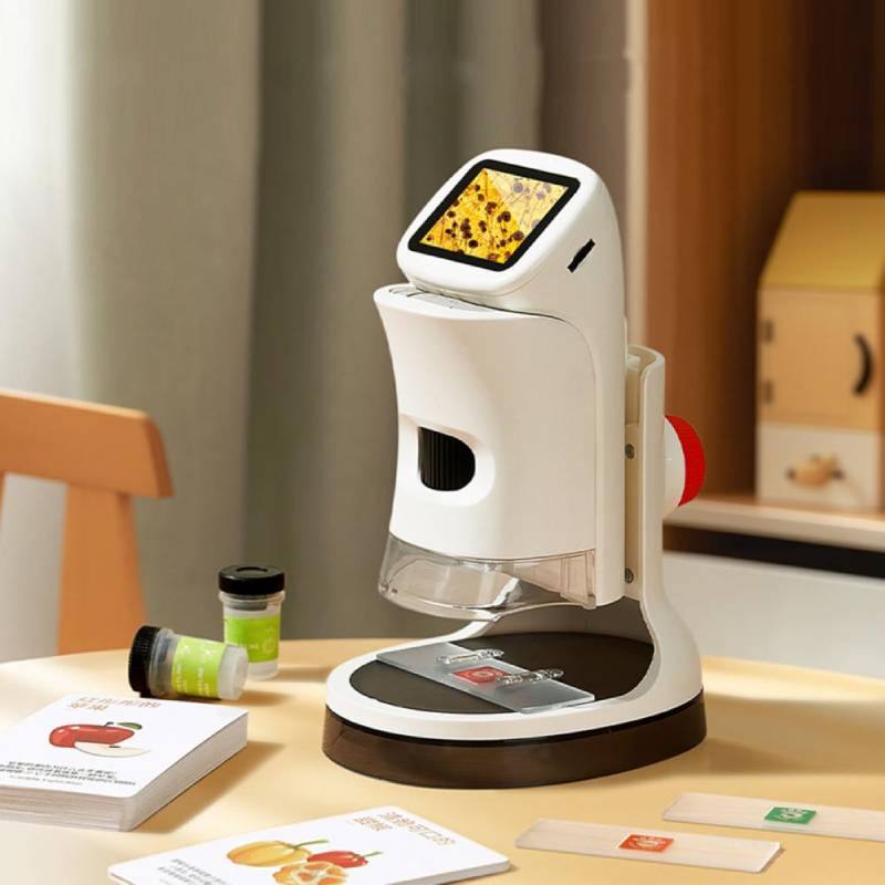 يوفر المجهر الجيبي تكبيرًا يتراوح من 100 إلى 1000 مرة ويتميز بشاشة مقاس 2 بوصة تدعم فيديو عالي الدقة 1080 بكسل، مما يجعل من السهل على الأطفال