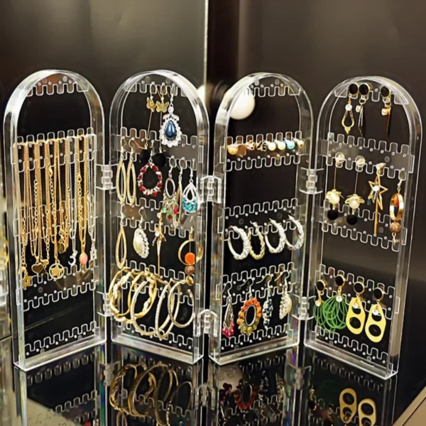 منظم حلوق من اكرليك الشفاف القابل للطي مزدوج , يستخدم في تنظيم ( حلوق – قلادات – خلاخيل و اساور ) .