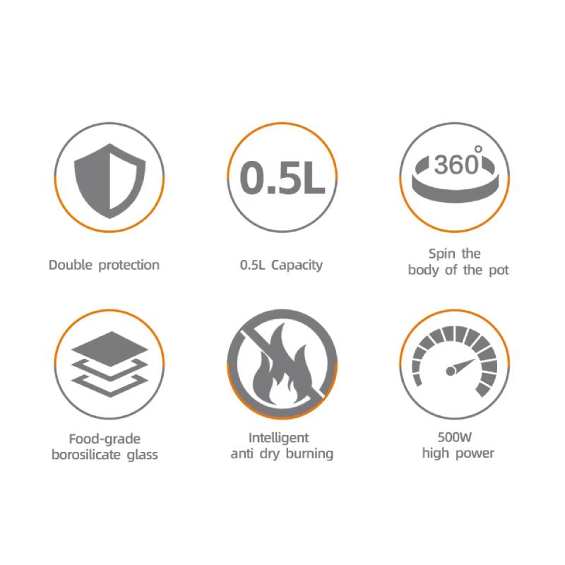 غلاية قهوة كهربائية عالية الجودة من هالي بقوة 600 واط و سعة 500 مل حماية من الغليان الجاف ، قاعدة دوارة 360 درجة