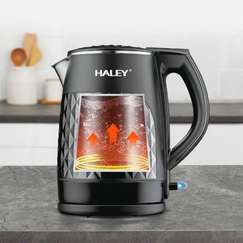 غلاية كهربائية مائية منزلية محمولة من هايلي بسعة 2.2 لتر هيكل داخلي من الستانلس ستيل , غلاف خارجي بلاستيكي مصمم للمقاومة من الحروق .