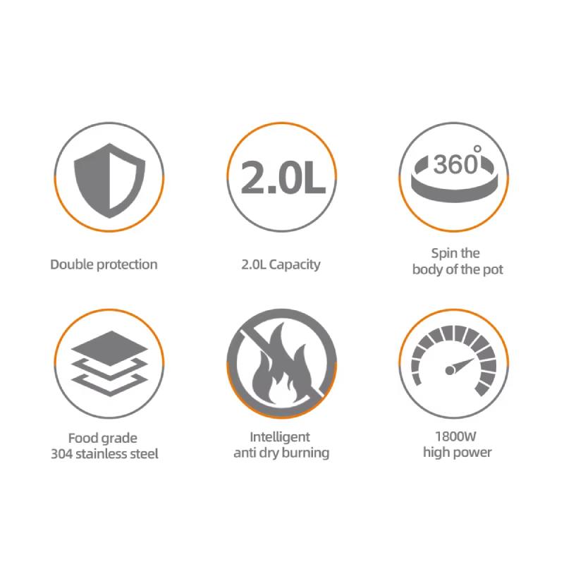 يتميز بقدرة 1800 واط : تسخين سريع جدًا في دقائق , قاعدة دوارة بزاوية 360 درجة من الفولاذ المقاوم للصدأ لسهولة