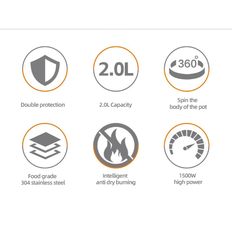 مزودة بقاعدة دوارة بزاوية 360 درجة ، وحماية من الغلي الجاف والإيقاف التلقائي مما يضمن السلامة والراحة نوع قابس EU مثالية للاستخدام