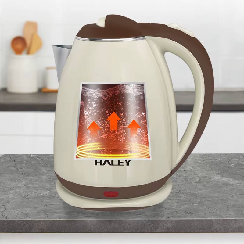 غلاية كهربائية للشاي متينة بسعة 2 لتر من هالي مناسبة للاستخدام المنزلي مصنوعة من مواد عالية الجودة ” الفولاذ المقاوم للصدأ ” .
