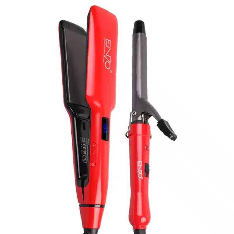 بكج تصفيف الشعر 2 بـ 1 “ستريتر و فير” من ENZO يعمل بتقنية الايونات السالبة , مناسب لجميع انواع الشعر فهو يوفر درجة حماية عالية للشعر ويستخدم لدى الصالونات .