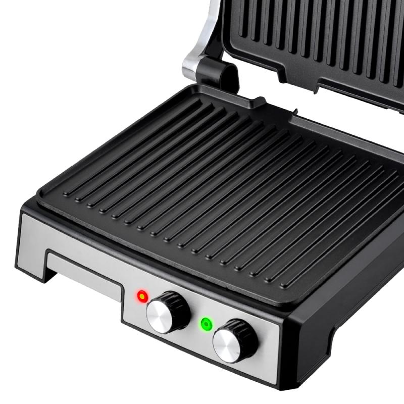 فتح بزاوية 180°، وتحكم ذكي بدرجة الحرارة , تصميم خالٍ من الدخان مع قاعدة مقاومة للانزلاق ومجمع زيت لسهولة التنظيف , قدرة عالية 2800 واط لطهي سريع وفعال سطح