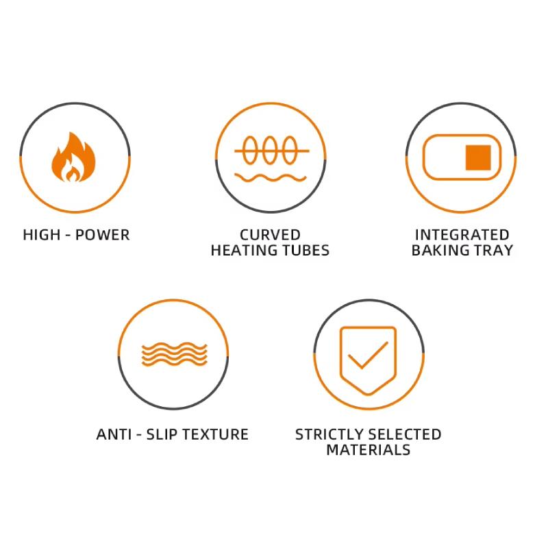 تحكم ذكي بدرجة الحرارة من 120° حتى 428° فهرنهايت إيقاف تسخين تلقائي عند الوصول للحرارة المطلوبة لمنع الاحتراق أضواء مؤشرات: أحمر للطاقة، أخضر للتسخين أرجل مائلة