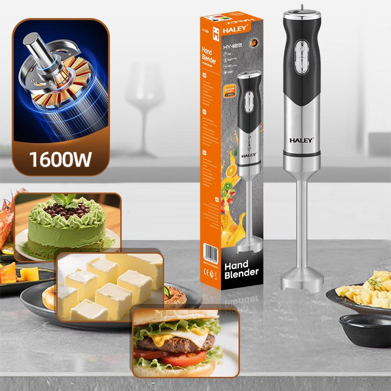 خلاط يدوي الاحترافي كهربائي من هالي بقوة 1600 واط  تصميم رباعي الشفرات مع تحكم في السرعة المتغيرة ، مما يجعله متعدد الوظائف لمهمات عصر وخلط المنزلية .
