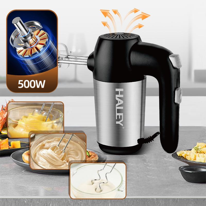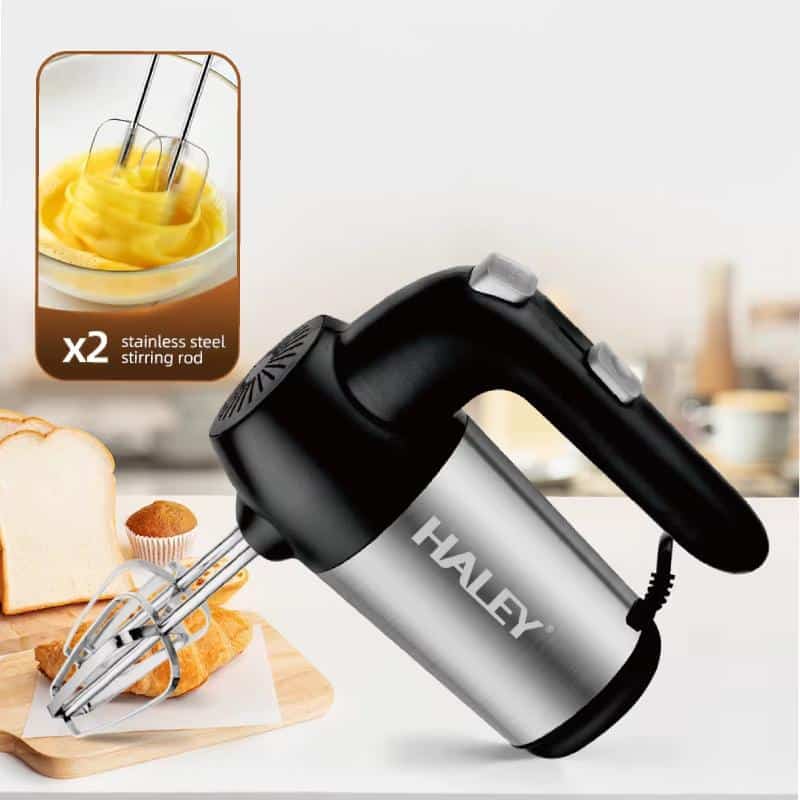 خلاط يدوي عالي الجودة من هالي بقوة 500 واط و 5 سرعات للتحكم هيكل متين من الفولاذ المقاوم للصدأ مناسب لتحضير  المعجنات، الكريمات، الموس .