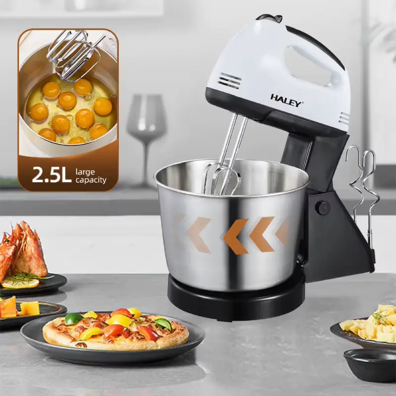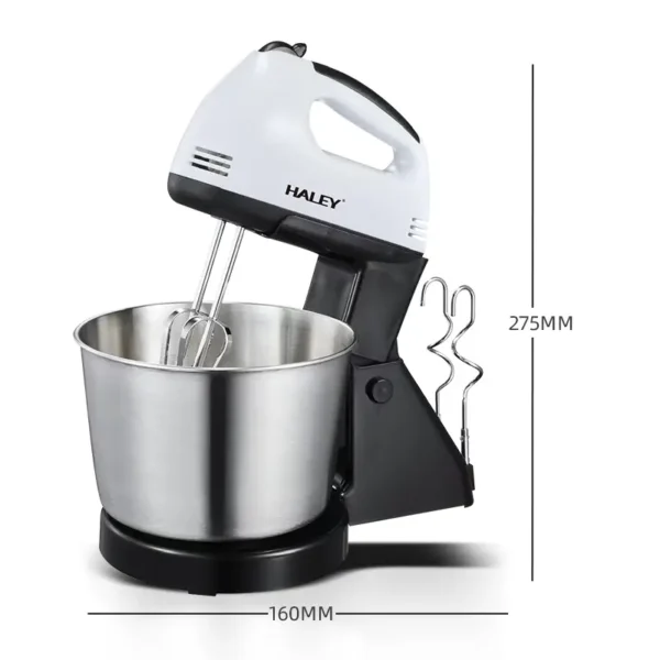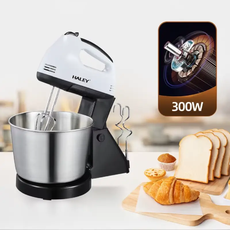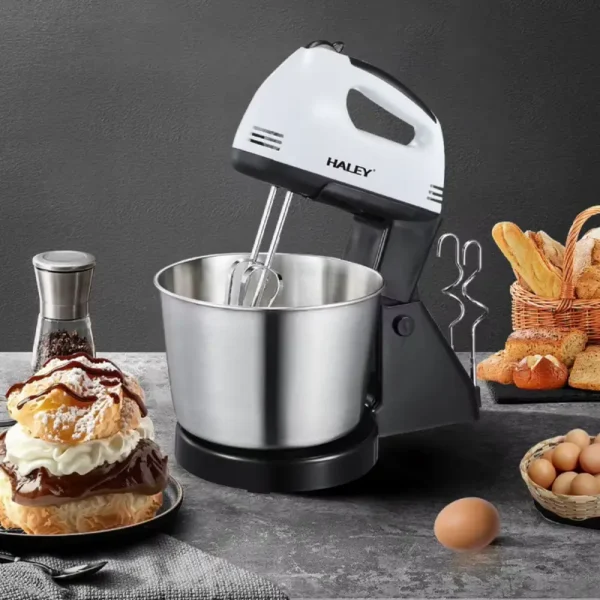 خلاط يدوي كهربائي عالي الجودة من هالي بقوة 300 واط مع وعاء من الفولاذ المقاوم للصدأ سعة 2.5 لتر يأتي بـ 7 سرعات للتحكم مناسب للاستخدام المنزلي .