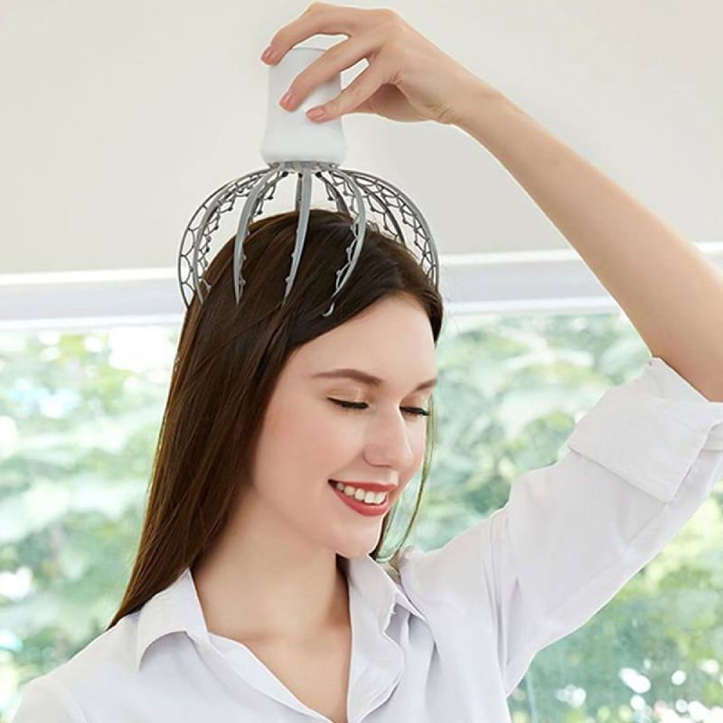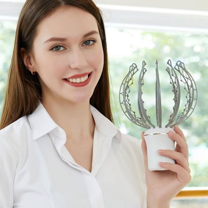 جهاز تدليك فروة الرأس عن طريق الاهتزاز ، يعمل من خلال الشحن، يتكون من 12 مخلب لضمان تدليك الرأس بالكامل .