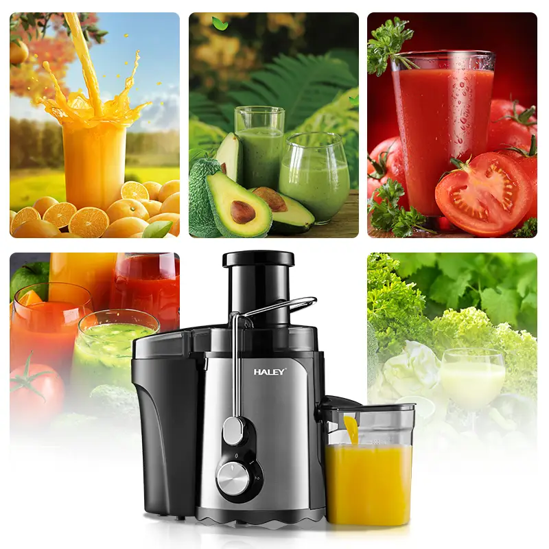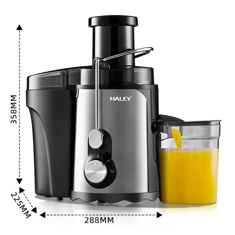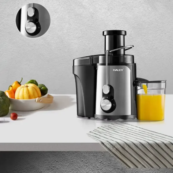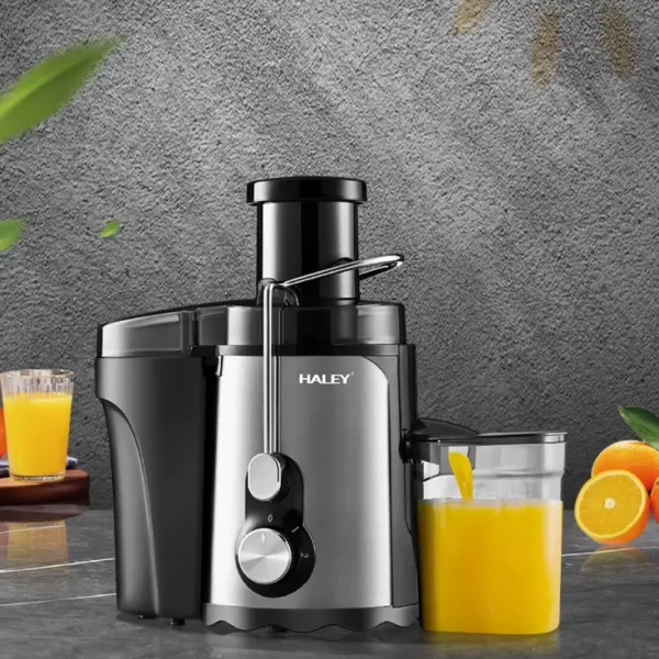 عصارة عصائر عالية الجودة من هالي بتصميم أنيق بقوة 1000 واط وهي مصممة للاستخدام المنزلي والخارجي. تتميز بخاصية طرد اللب تلقائيًا ، وفتحة تغذية كبيرة