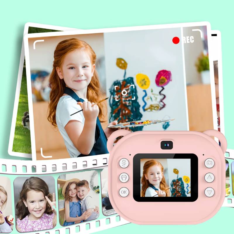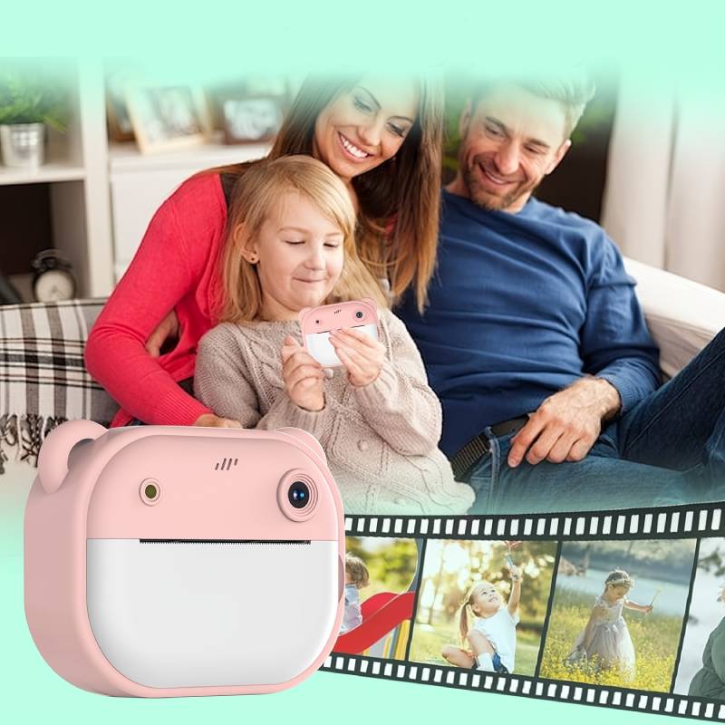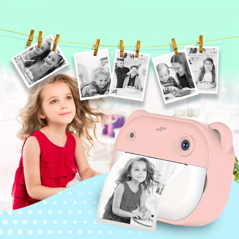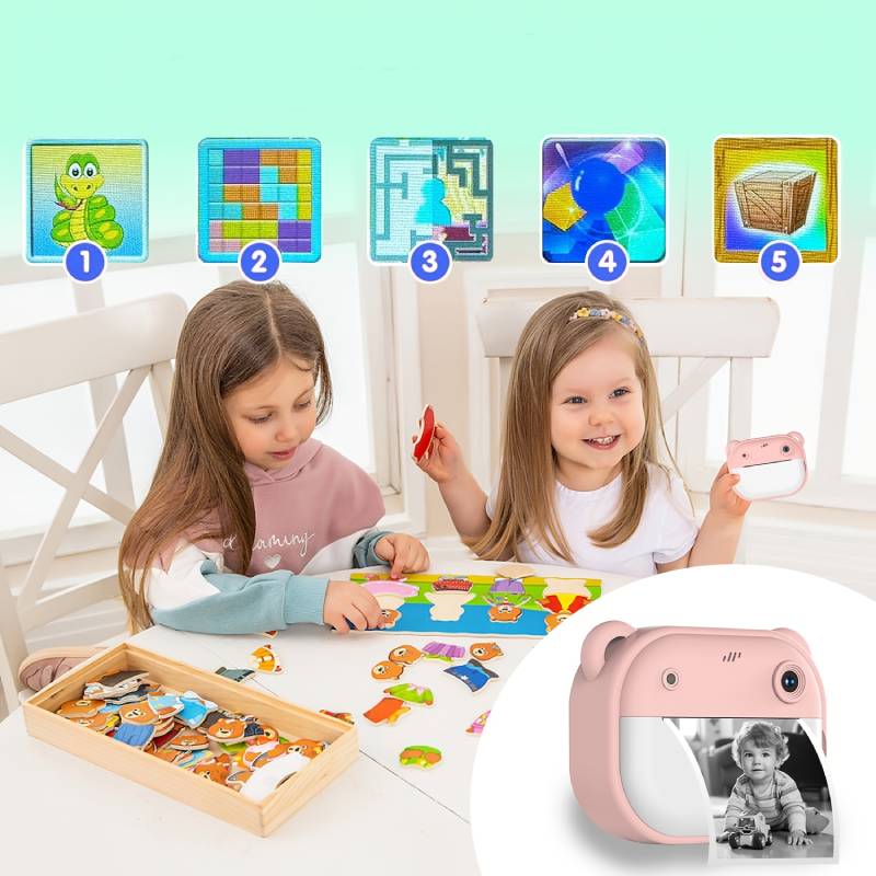 كاميرا فورية تسمح للأطفال بالتقاط صور ملونة وتسجيل مقاطع فيديو عالية الدقة بدقة 1080 بكسل وطباعة صور بالأبيض والأسود , مع 5 ألعاب أحجية مدمجة