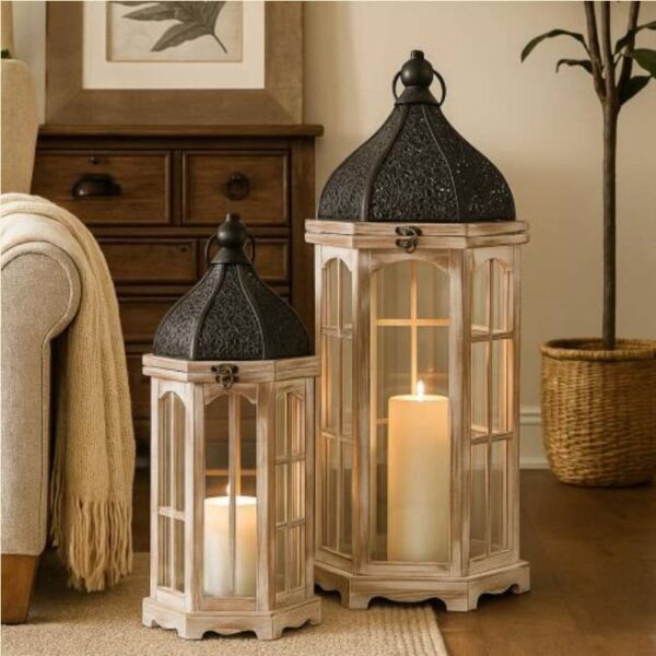 فانوس اندلسي الشكل مصنوعة من أجود أنواع الخشب والمعادن لإنشاء قطع مستوحاة من الطراز العتيق .