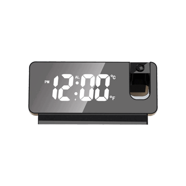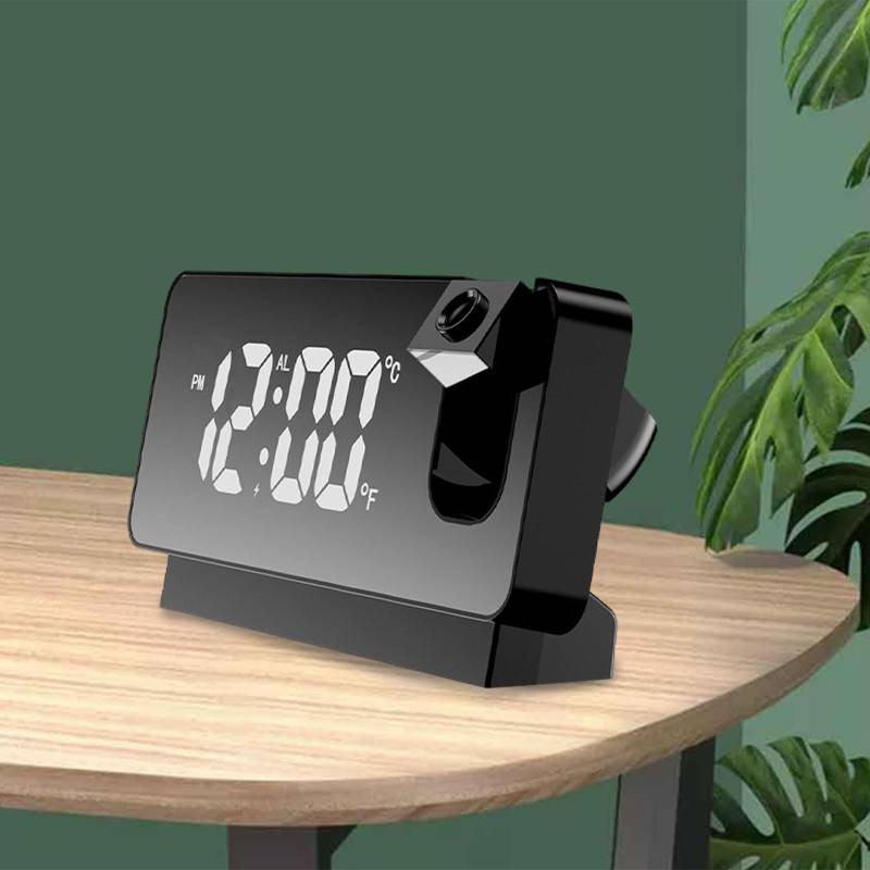 ساعة رقمية ذكية بمنبه الاسقاط مع جهاز عرض دوار 180 درجة لعرض الوقت على سطح غرفة المعيشة او مكتب .