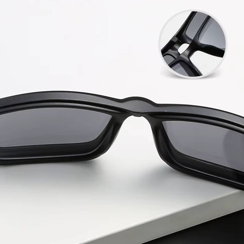 UV 400 – عدسات POLARIZED – يمكن تركيب عدسات طبية بدل عدسات الشمسية , يوجد على حواف الاطار قطعتان صغيرتان