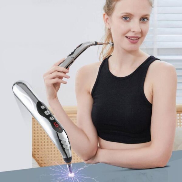 قلم تدليك قابل لإعادة الشحن يستخدم مبادئ الوخز بالإبر الصينية مع التكنولوجيا الحيوية الحديثة , يعمل عن طريق إرسال نبضات كهربائية لتحفيز نقاط الوخز بالإبر في الجسم .
