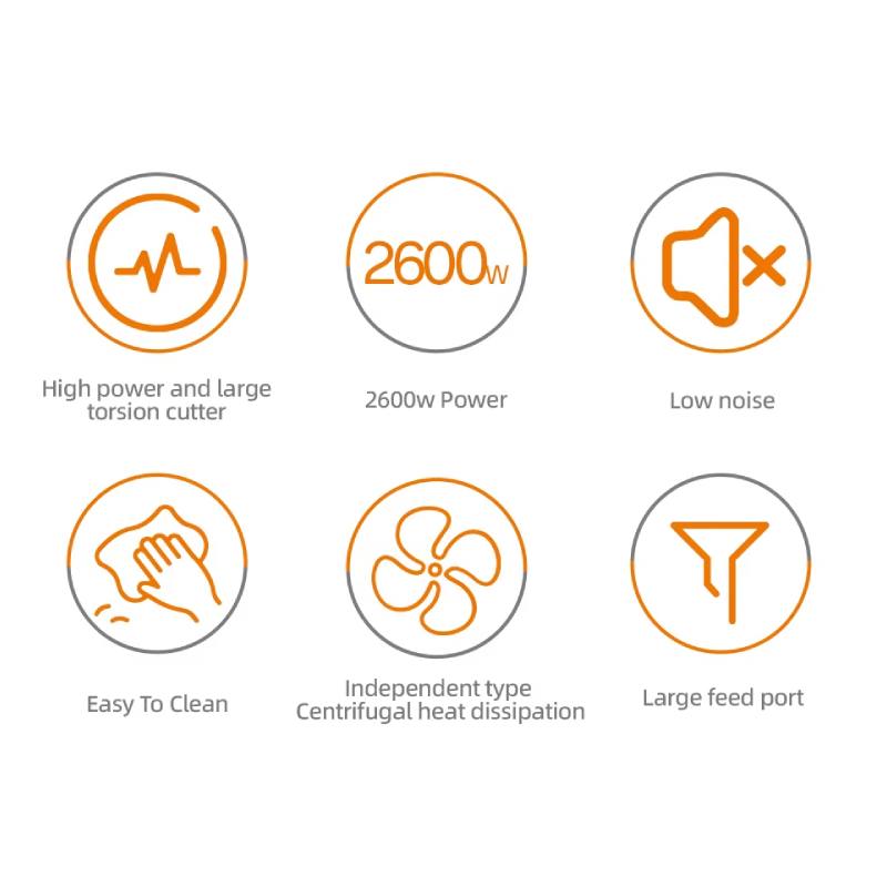 ذات نتائج مثالية في كل مرة، سواءً كنت تفرم اللحم أو السمك أو الخضراوات تتميز قاطع عالي عزم الدوران ، سهل التنظيف