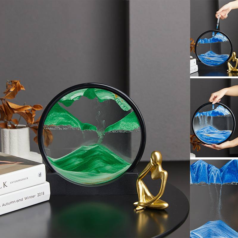 طبيعية للرسم الرملي ثلاثي ابعاد , ممكن تدوير الساعة 360 درجة مع كل دورة تبدأ الرمال في تحرك , ويظهر مشهد طبيعي أكثر استرخاءً وسلاماً , ديكور فريد من نوعه