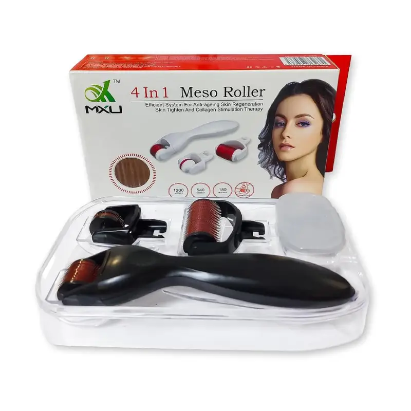 مجموعة ديرما رولر 4 في 1 ميزو رولر (MXU) نظام متطور للوخز بالإبر الدقيقة (Micro-needling) مصمم للعناية بالبشرة وتحفيز إنتاج الكولاجين الطبيعي .