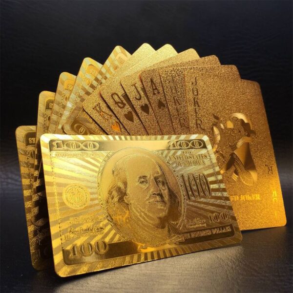 ورق لعبة البوكر كازينو المطلي بـللون الذهبي بتصميم جميل ” ورق دولار الامريكي ” .