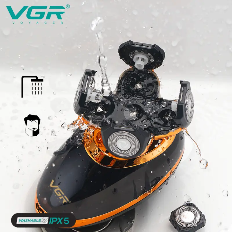 حاصلة على تصنيف IPX5 مما يعني أنها قابلة للغسل بالكامل وتدعم الحلاقة الجافة أو الرطبة باستخدام الرغوة أو الجل * رأس حلاقة عائم 5D مزود بـ 5 شفرات دوارة مرنة تتكيف