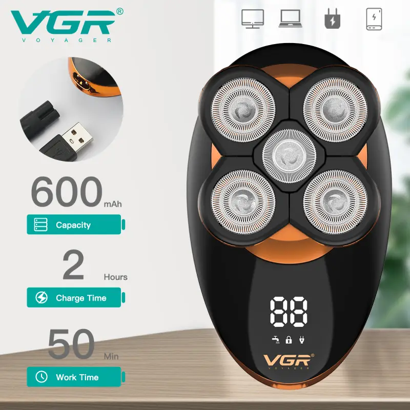 مع منحنيات الوجه والرقبة وحلاقة الرأس * مزودة بشاشة LED ذكية تعرض النسبة المئوية المتبقية لشحن البطارية * تعمل ببطارية ليثيوم قابلة لإعادة الشحن عبر USB * مدة