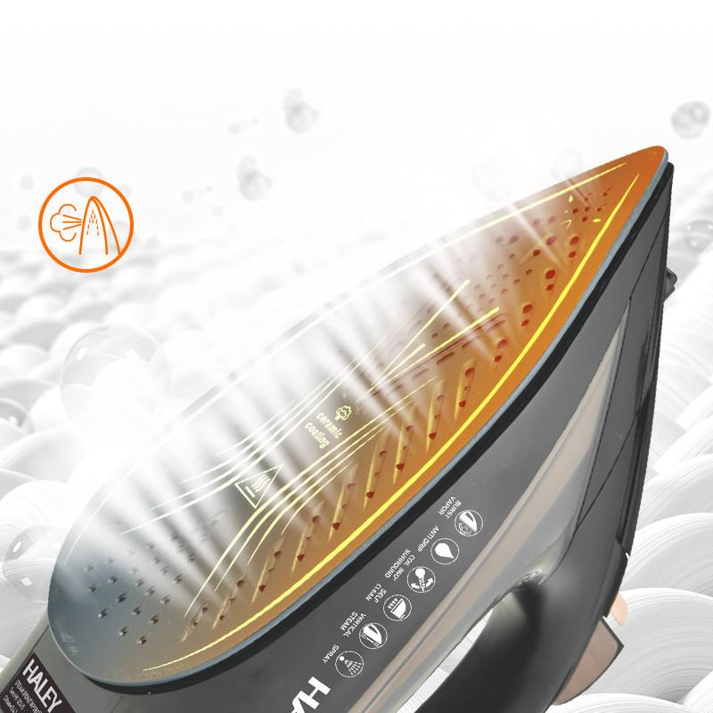 مكواة كهربائية بخارية عالية الطاقة من هالي بقوة 2600 واط أداءً قويًا مع لوحة سيراميكية للكي السلس و سعة 420 مل للاستخدام المطول .
