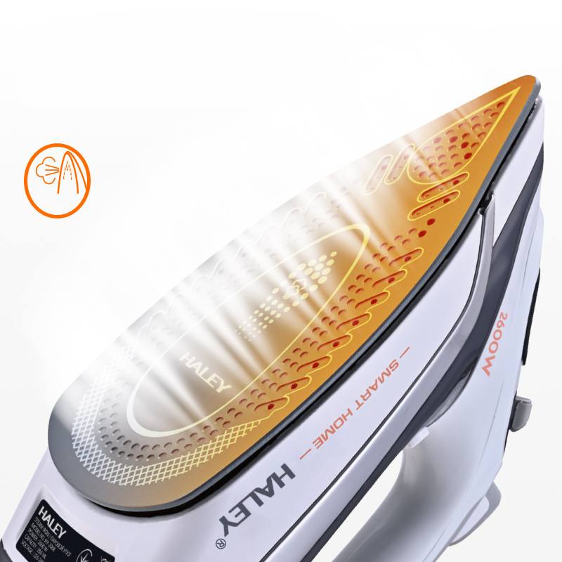 مكواة كهربائية بخارية عالية الطاقة من هالي بقوة 2600 واط , بتصميم يجمع بين القوة العالية والموثوقية والأداء المتطور . بفضل قاعدتها المصنوعة من السيراميك .