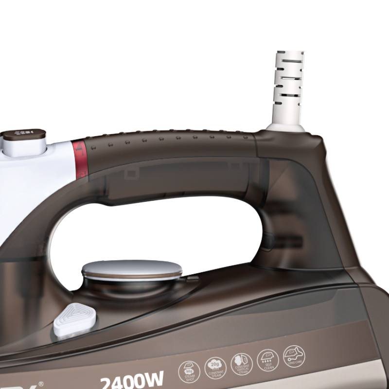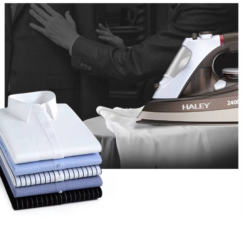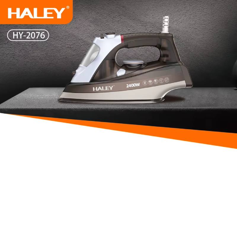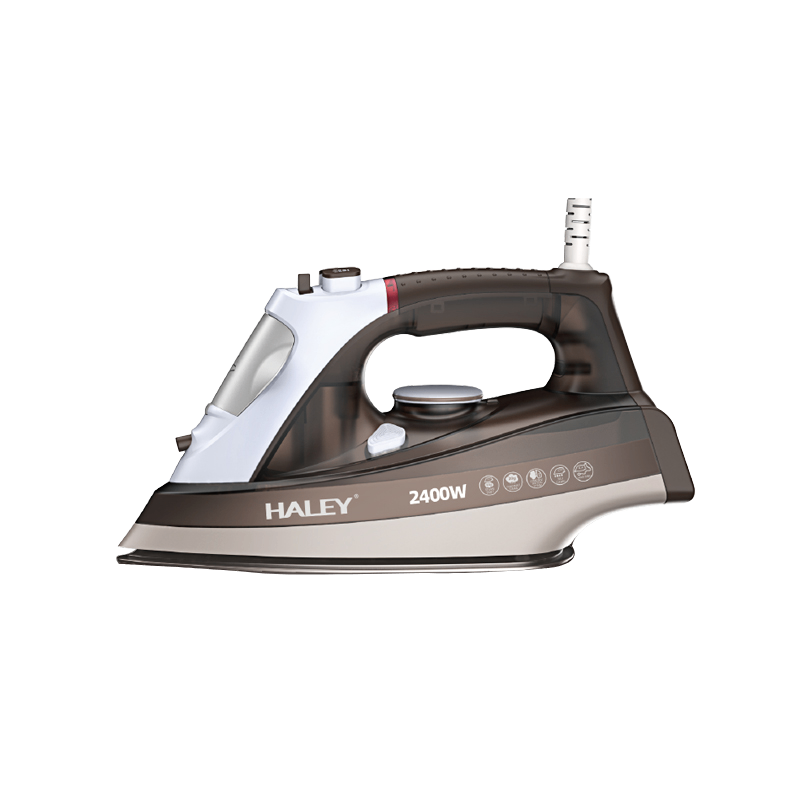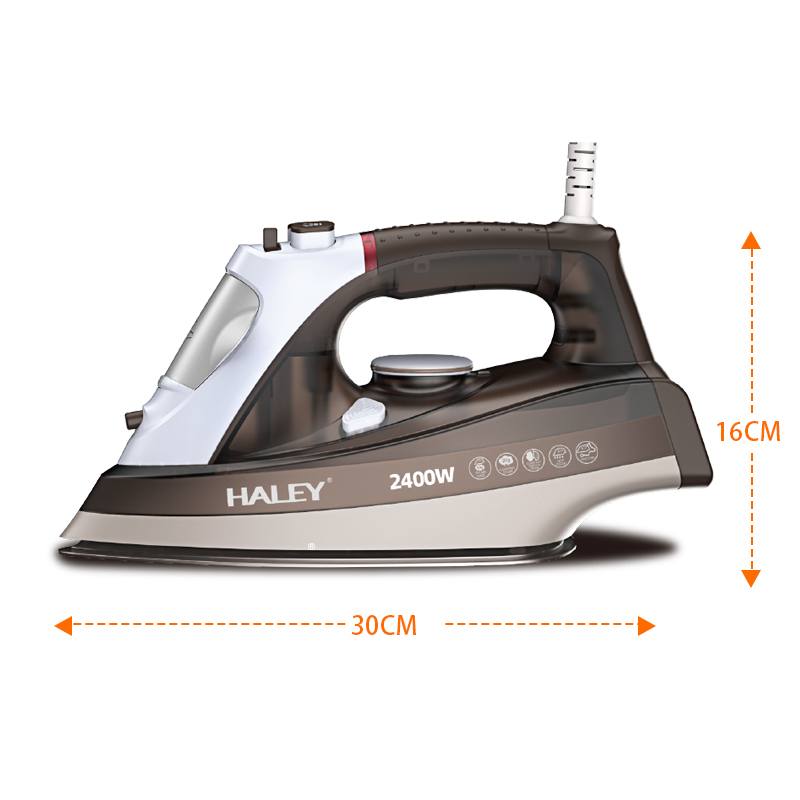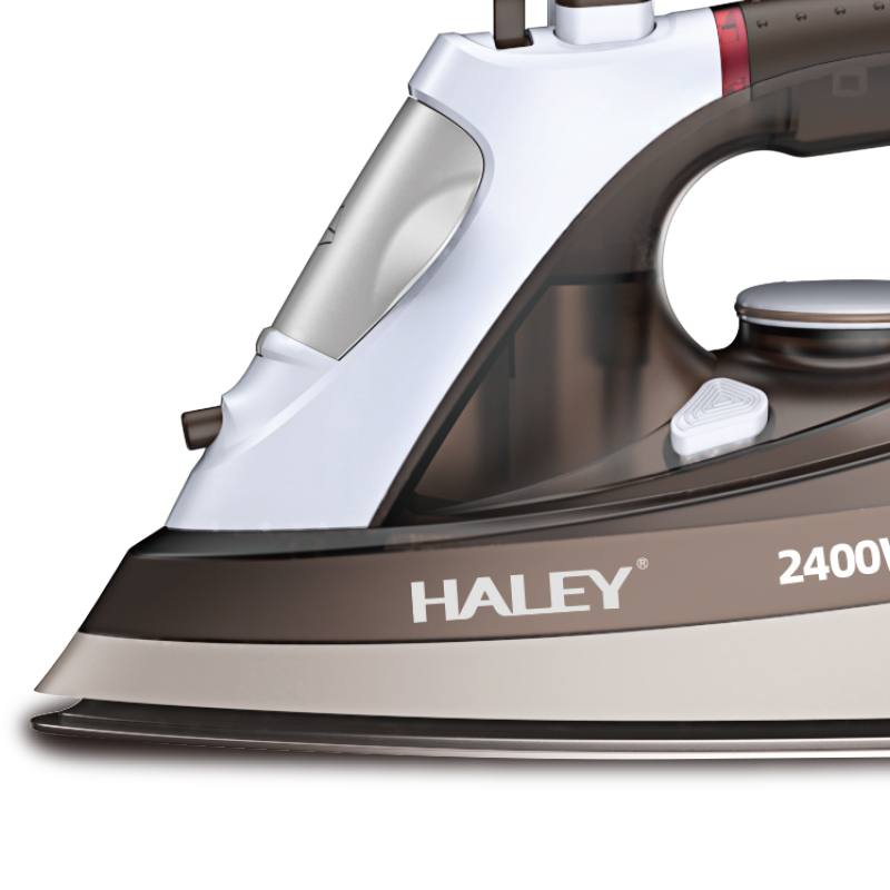 مكواة كهربائية بخارية عالية الطاقة من هالي بقوة 2400 واط تتميز بلوح قاعدي مصنوع من الفولاذ , مناسبة للاستخدام المنزلي والفندقي .