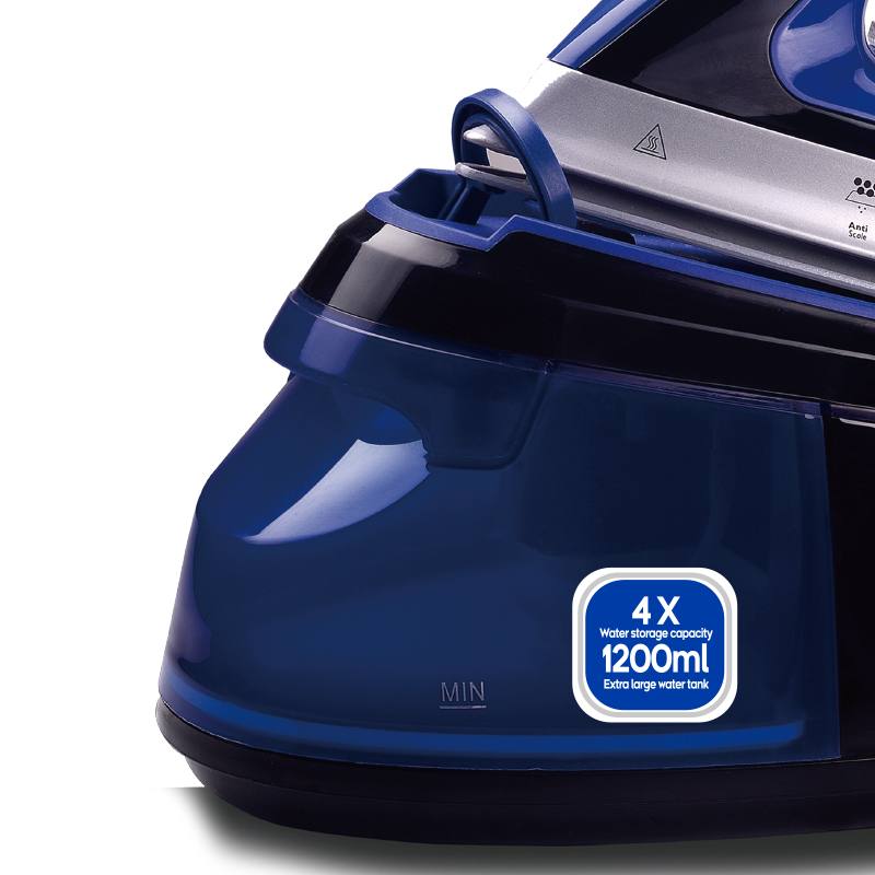 حتى أصعب التجاعيد بسهولة , يسمح خزان البخار الكبير سعة 1.2 لتر بالكي دون انقطاع كما يُعد نظام البخار العمودي مثاليًا لتجديد الستائر والملابس المعلقة .