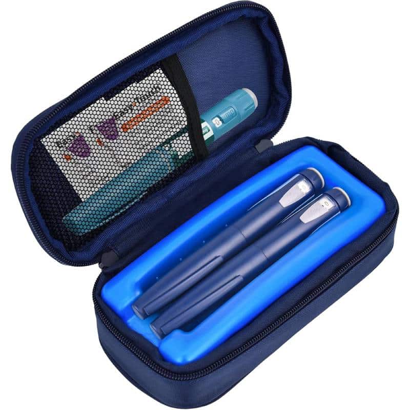 بتصميم يوفر مساحة كافية لاستيعاب عدد من أقلام الأنسولين، والحقن، وإبر القلم، وشرائط الاختبار، ومستلزمات أخرى لمرضى السكري , سهولة