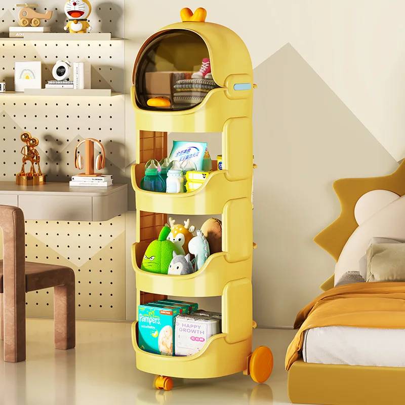 منظم تخزين العاب اطفال مكون من 4 طبقات , متنقلة , متدحرجة , بلاستيكية مع عجلات لغرف الاطفال .