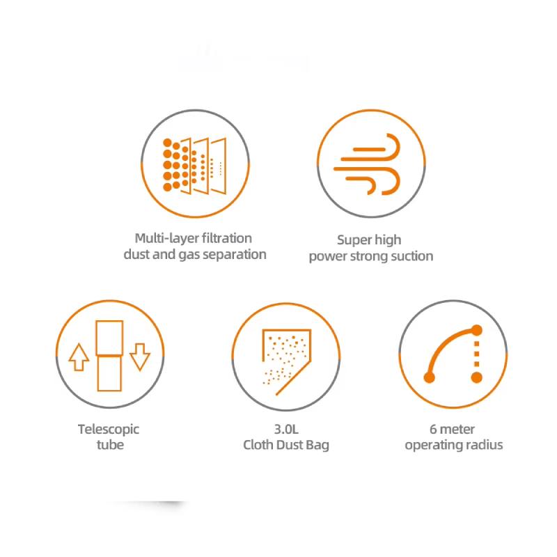 تتميز حاوية الغبار بمقبض عملي لسهولة النقل , تتميز المكنسة الكهربائية بنظام ترشيح متعدد ، مما يضمن تجربة تنظيف مريحة