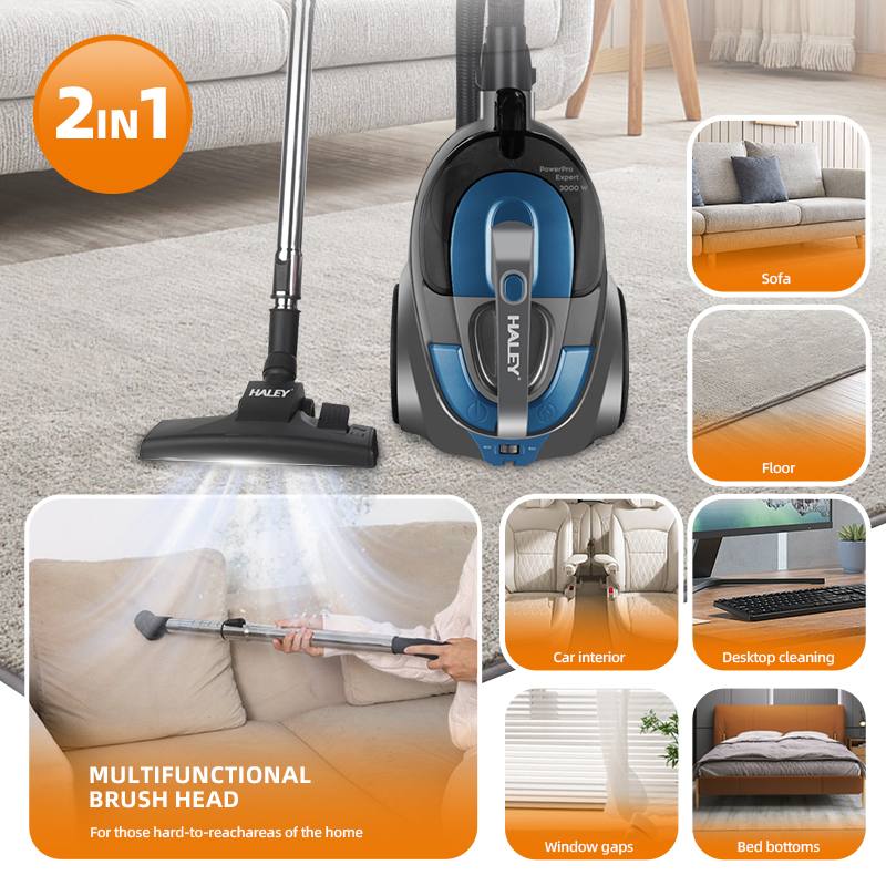 مكنسة كهربائية افقية بقوة شفط قوي من هالي بقوة 3000 واط تتميز بتقنية الإعصار القوية وهي مصممة للأرضيات الصلبة والسجاد .