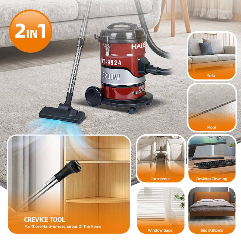 مكنسة كهربائية بقوة شفط عالية من هالي بسعة 25 لترًا بمحرك قوي بقوة 3200 واط لتوفير قوة شفط قوية  .